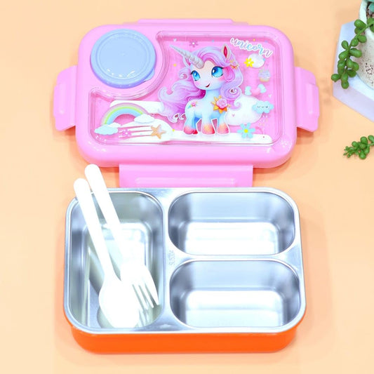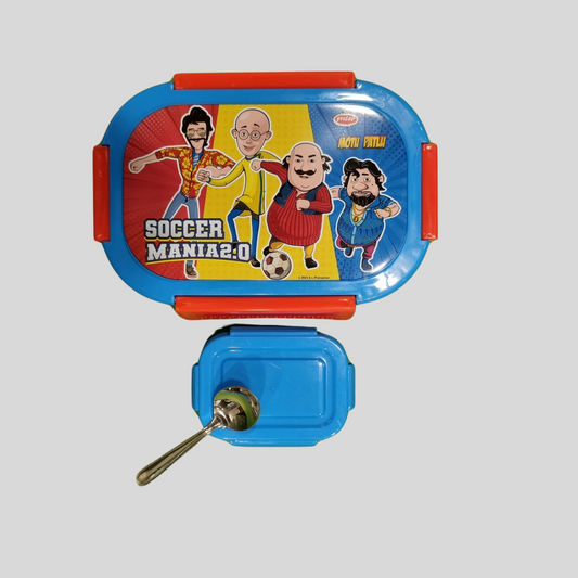 Kids' Cartoon-Themed Stainless Steel Lunch Box Set 500 ml – 3-Container Design with Spoon (Motu & Patlu -Soccer Mania 2.0)