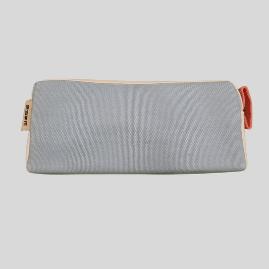 Minimalist Canvas Pencil Pouch – Blue with Red Strap